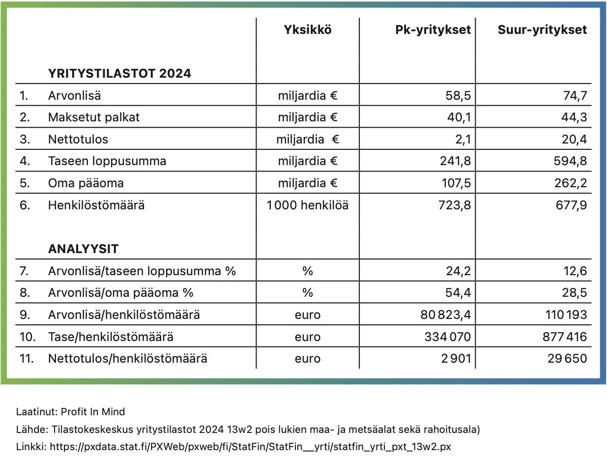 Analyysi: Pk-yritykset vs. suuryritykset Suomessa 2019–2024